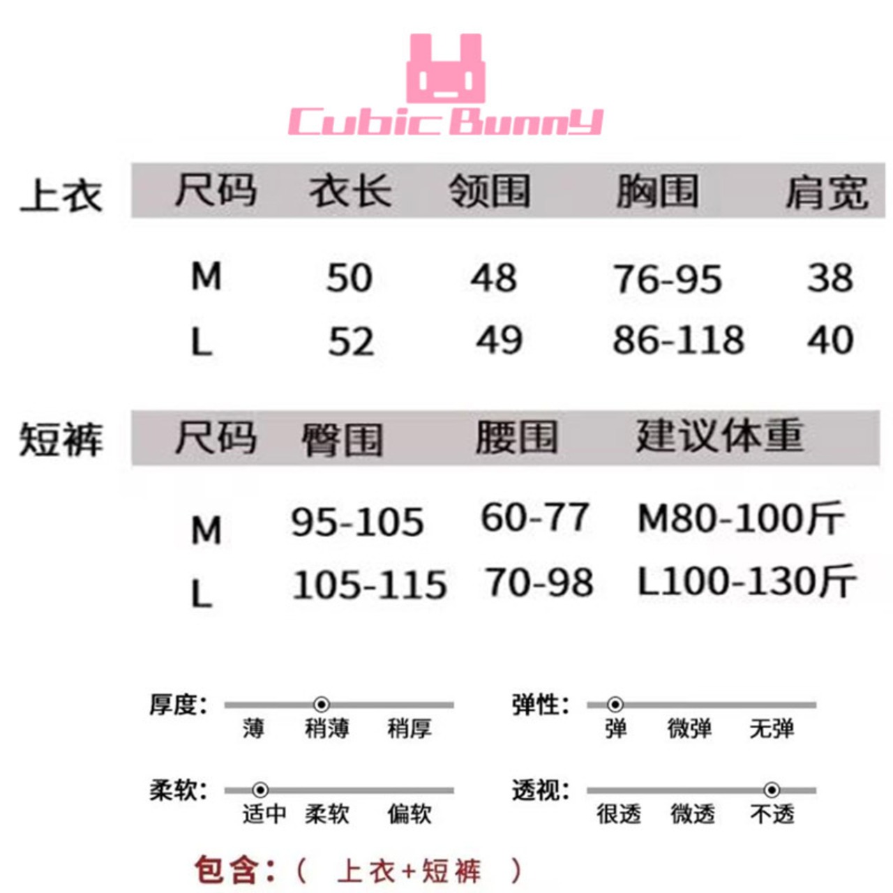 M:着丈50 首回り48 バスト76-95 肩幅38